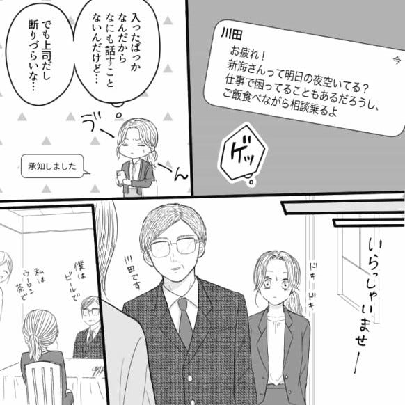 「ご飯食べながら相談乗るよ」ガッツリプライベートまで踏み込んでくる上司...【とんでもないセクハラ発言】に主人公絶句!?