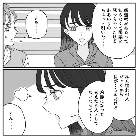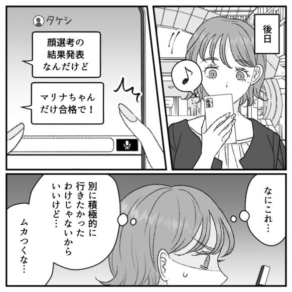 そして合コンのグループに入った陽菜は、なんと「合コンに参加するには顔選考がある」と伝えられます。
