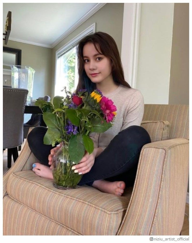 NiziUニナ、前髪分けショットに「大人っぽい」「薔薇が似合う」の声