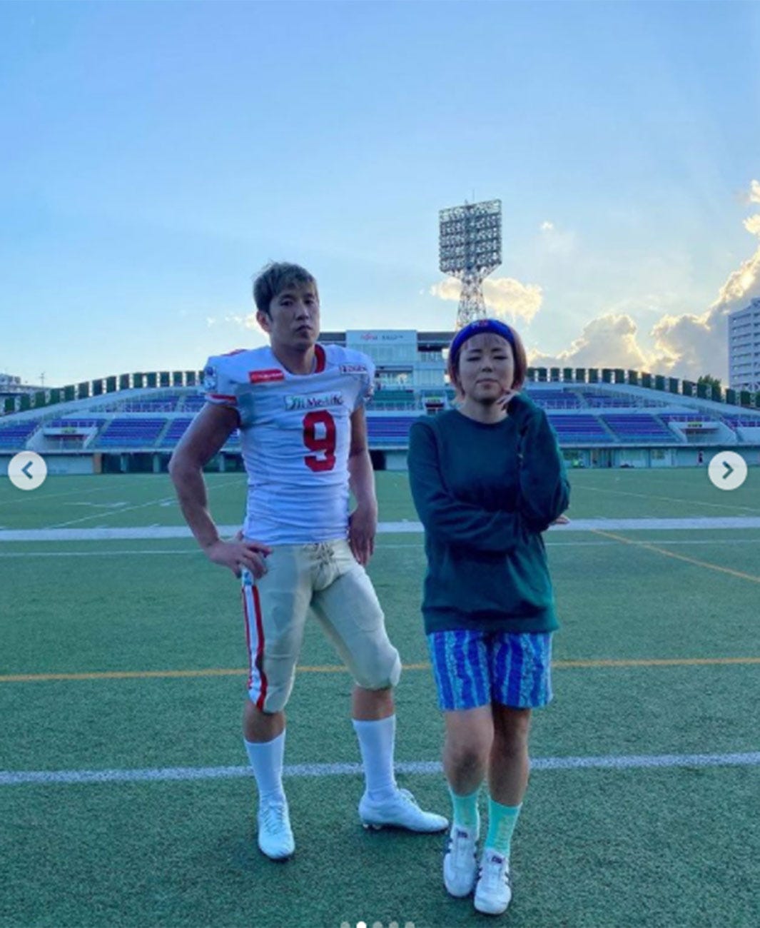 藤原しおり(ブルゾンちえみ)、元“with B”ブリリアン コージ・トクダのアメフト観戦 2ショットに反響「エモい」