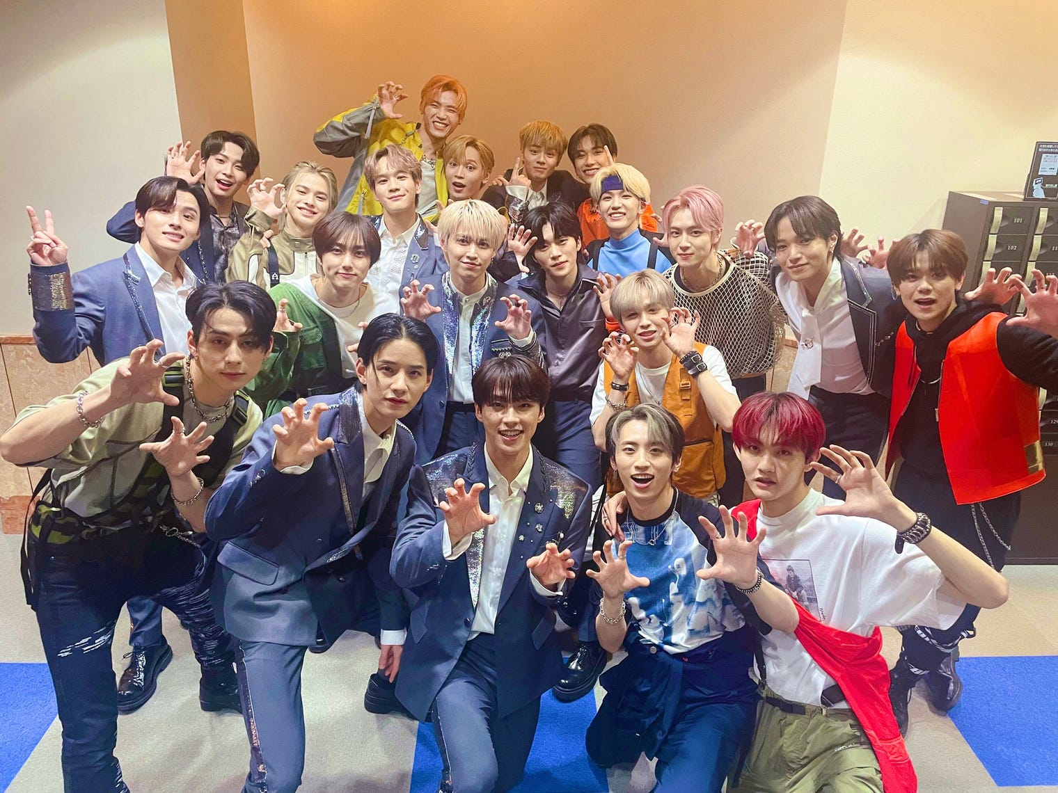 JO1&INI、寅ポーズの集合ショット公開 最前の“年男4人”に注目集まる