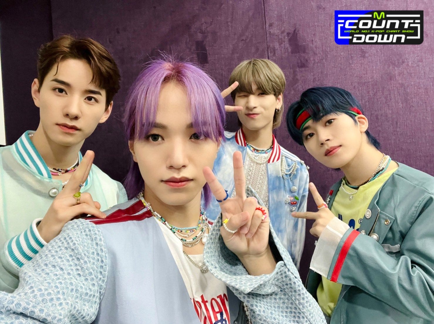 (JO1/左から)佐藤景瑚、大平祥生、金城碧海、木全翔也/「M COUNTDOWN」公式Twitterより