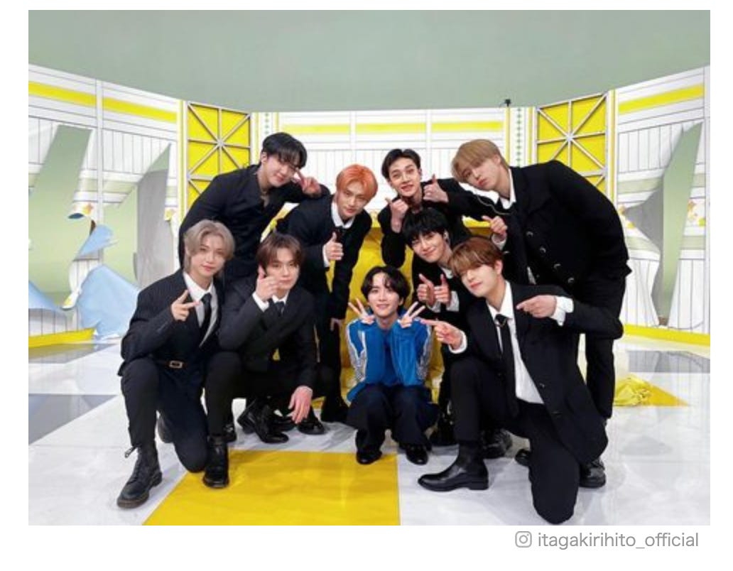 (左上から時計回りに)チャンビン 、ヒョンジン、バンチャン、ハン、スンミン、アイエン、板垣李光人、リノ、フィリックス/板垣李光人Instagramより