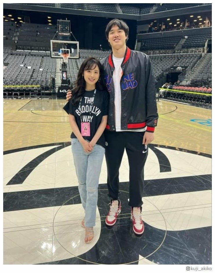 久慈暁子アナ、夫・渡邊雄太選手と“肩抱き”2ショット NBAレギュラーシーズン終了に労いの声