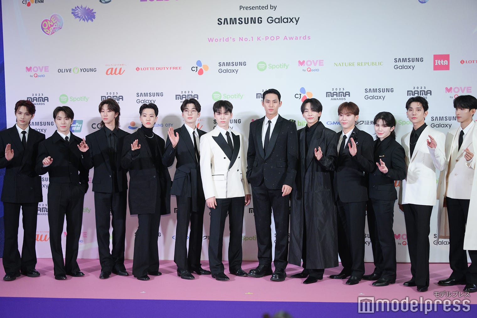 JUN(ジュン)、DINO(ディノ)、THE 8(ディエイト)、HOSHI(ホシ)、WONWOO(ウォヌ)、VERNON(バーノン)、MINGYU(ミンギュ)、JEONGHAN(ジョンハン)、SEUNGKWAN(スングァン)、WOOZI(ウジ)、JOSHUA(ジョシュア)、DK(ドギョム)/SEVENTEEN(S.COUPSは怪我のため不在)(C)モデルプレス