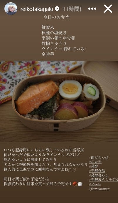 高垣麗子、丁寧な彩り弁当公開 秋鮭の塩焼き・金時芋…「参考になる」「お手本にしたい」