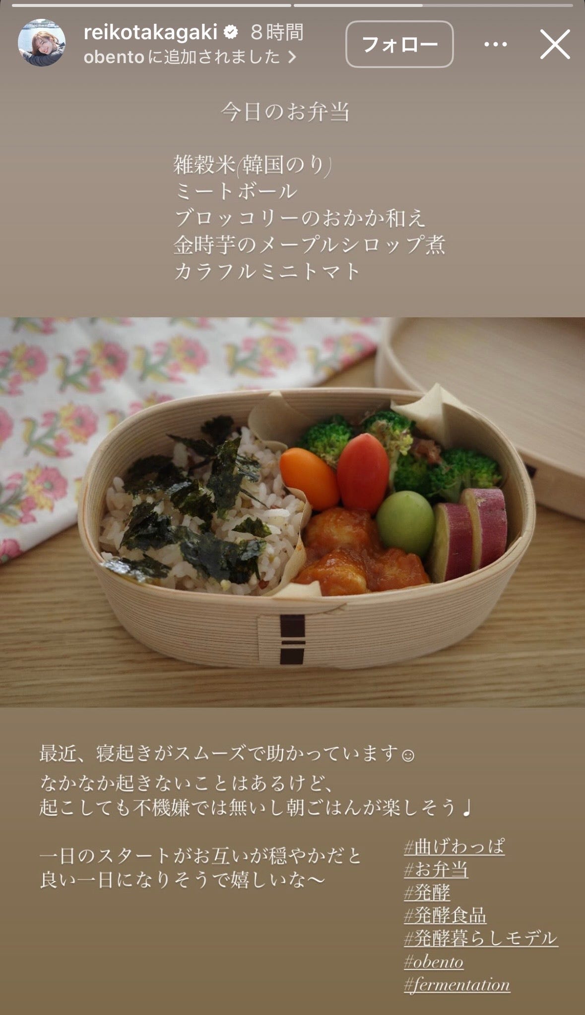 モデルの高垣麗子が11日、自身のInstagramのストーリーズを更新。手作り弁当を公開し、反響が寄...