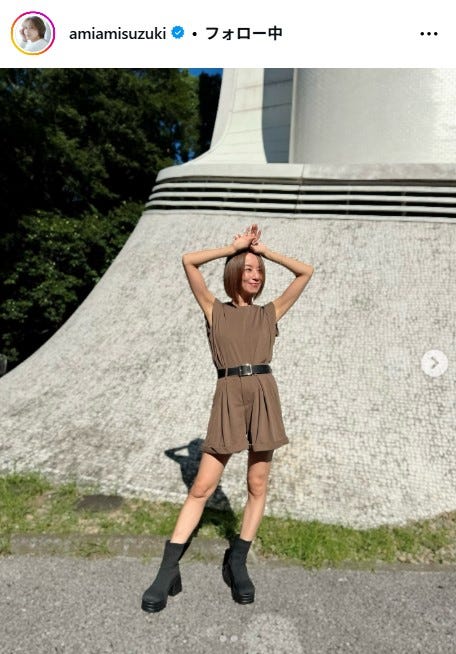 鈴木亜美、美脚全開セットアップ姿披露「私服おしゃれ」「スタイル抜群」