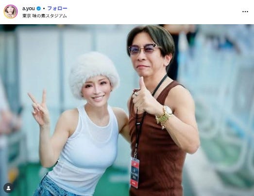 浜崎あゆみ、松浦勝人氏と密着2ショット「a-nation」裏側公開に「可愛すぎる」「最強なコンビ」とファン歓喜
