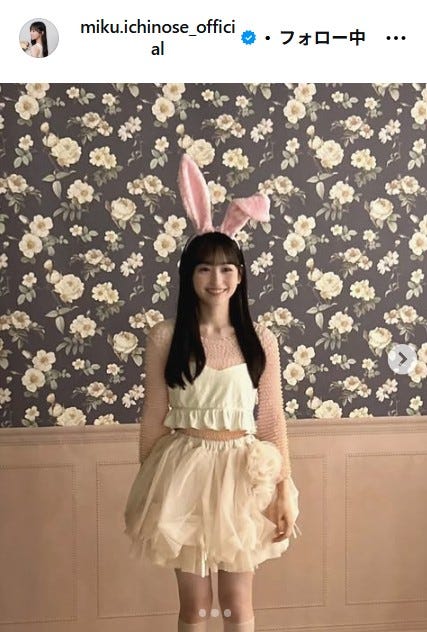 乃木坂46の一ノ瀬美空が12日、自身のInstagramを更新。うさぎのコスプレ姿で美しい脚を披露し...