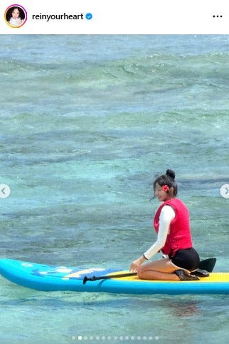 IVEレイ、美脚際立つパドルサーフィン姿公開「スタイル良すぎ」「海が似合う」と反響