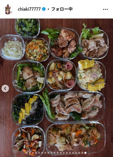 タレントの千秋が、16日までに自身のInstagramを更新。色とりどりの作り置き料理の写真を公開し...