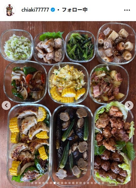 タレントの千秋が、16日までに自身のInstagramを更新。色とりどりの作り置き料理の写真を公開し...