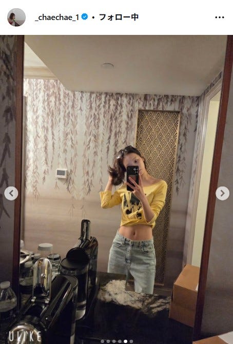 LE SSERAFIMチェウォン、美ウエスト際立つTシャツ姿「スタイル抜群」「ラフで可愛い」