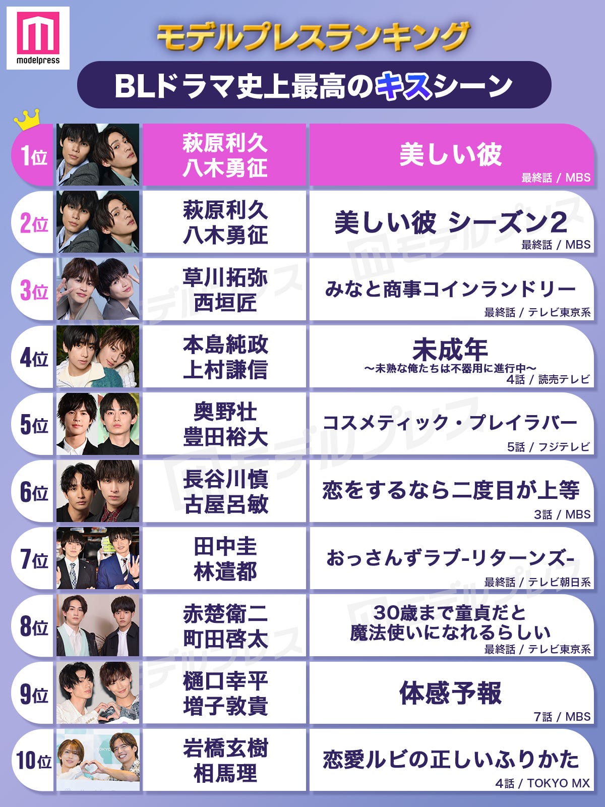 読者が選ぶ「BLドラマ史上最高のキスシーン」トップ10を発表【モデルプレスランキング】