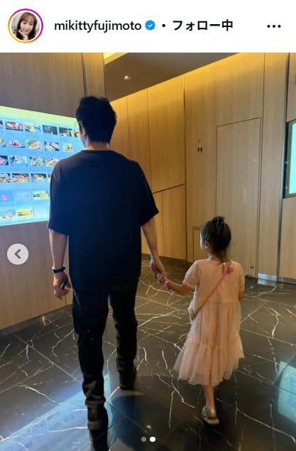 藤本美貴、夫・庄司智春&娘の手繋ぎショット公開「いつもプリンセス扱いしてくれます」