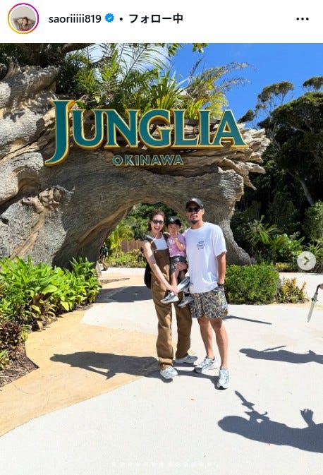木村沙織、家族でジャングリア沖縄へ 夫&子ども顔出し旅行写真に反響「幸せそう」「仲良し家族」