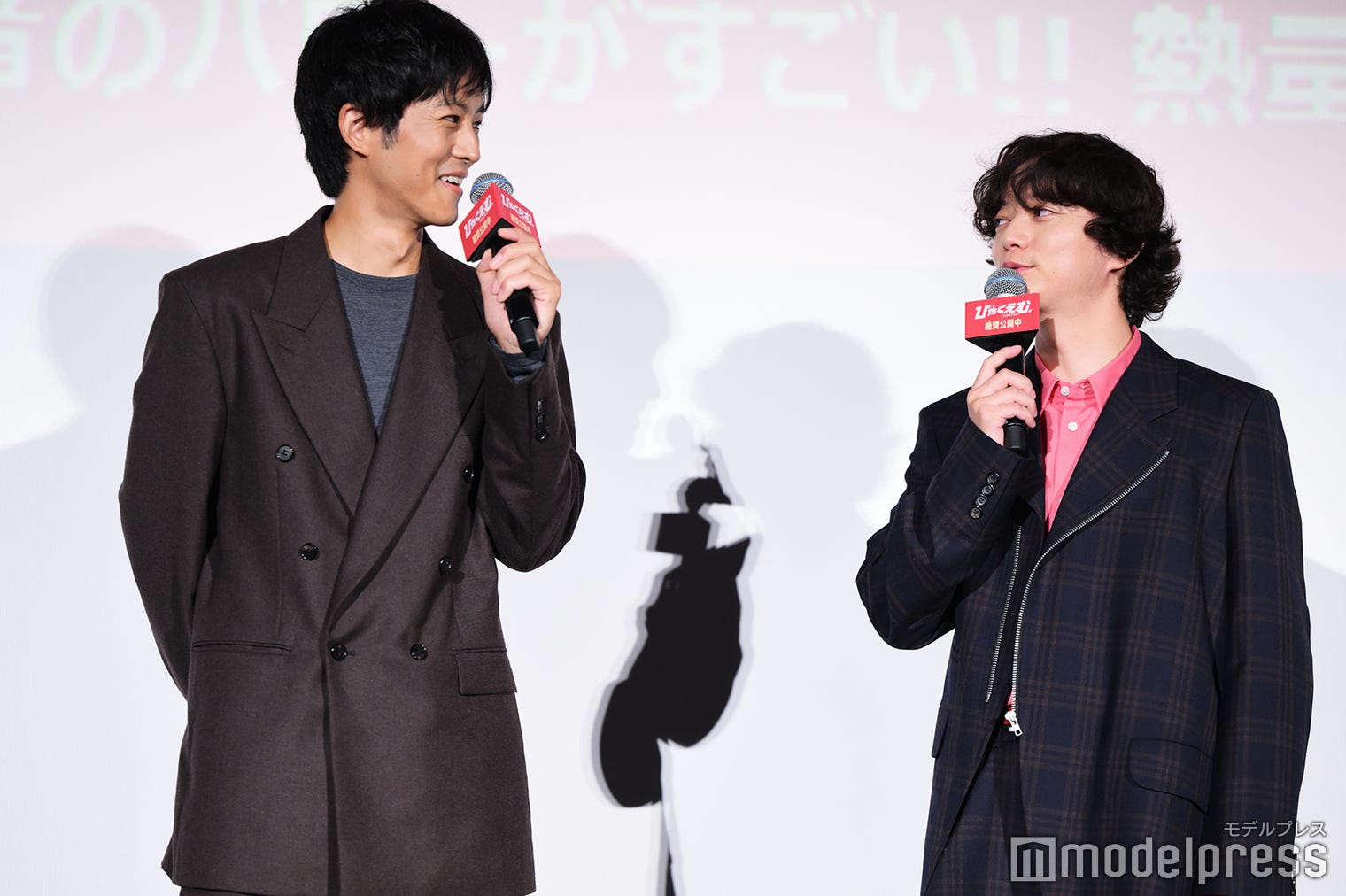 俳優の松坂桃李、染谷将太が19日、都内で開催された劇場アニメ『ひゃくえむ。』公開初日舞台挨拶に出席。...