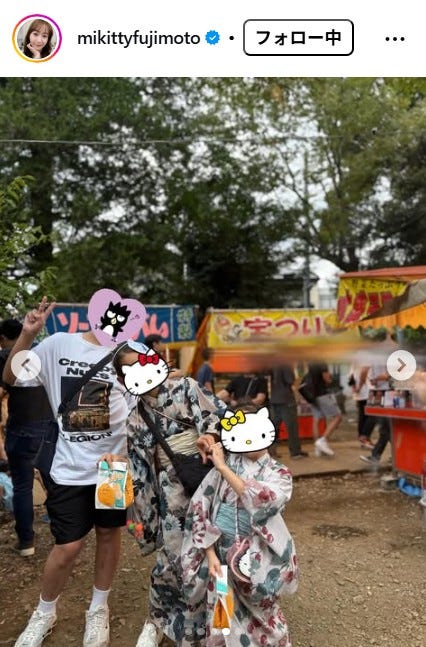 タレントの藤本美貴が9月23日、自身のInstagramを更新。子どもたちとのお祭りでの様子を公開し...