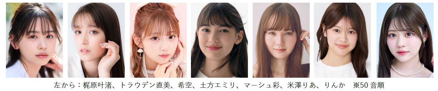 (左から)梶原叶渚、トラウデン直美、希空、土方エミリ、マーシュ彩、米澤りあ、りんか(提供写真)