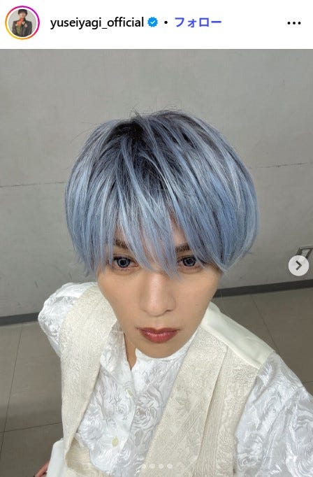 FANTASTICSの八木勇征が10月1日、自身のInstagramを更新。青い髪色の自撮り写真を公...
