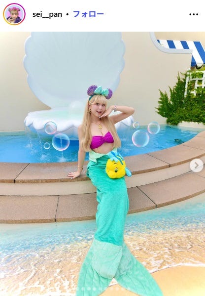 夫婦YouTuberゆたせな・セイナ、アリエルコーデで美ボディ全開 “ヒレ”に注目集まる「スタイル良すぎ」「機能的」の声
