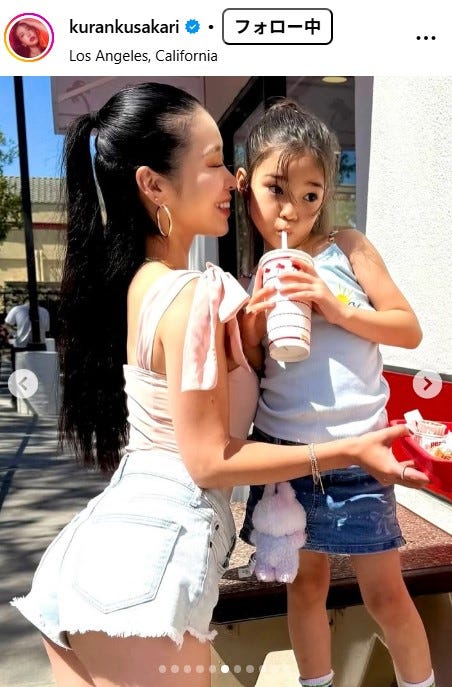 モデルの紅蘭が10月1日、自身のInstagramを更新。美しいヒップが際立つショーパン姿での娘との...
