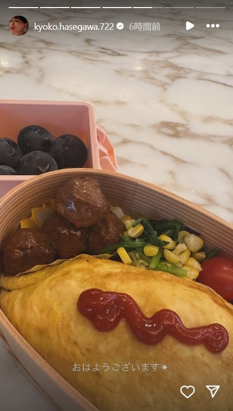 長谷川京子、手作りオムライス弁当披露「お子さん喜びそう」「彩り豊かで素敵」の声