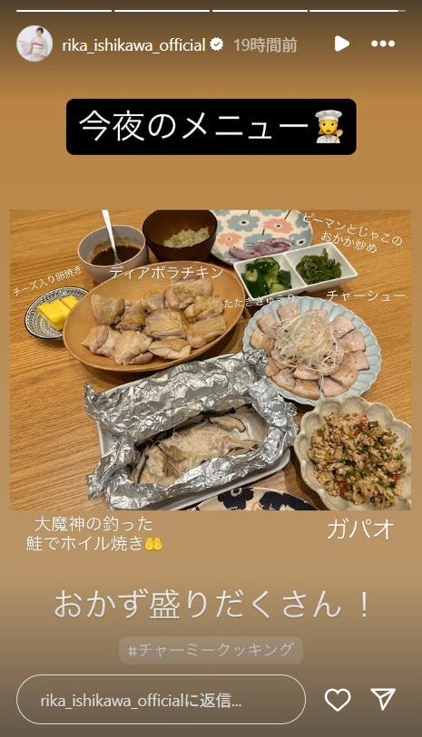 元モーニング娘。でタレントの石川梨華が10月1日、自身のInstagramストーリーズを更新。品数豊...