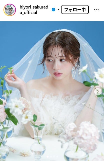 女優の桜田ひよりが2日、自身のInstagramを更新。ウェディングドレス姿を公開し、話題を呼んでい...