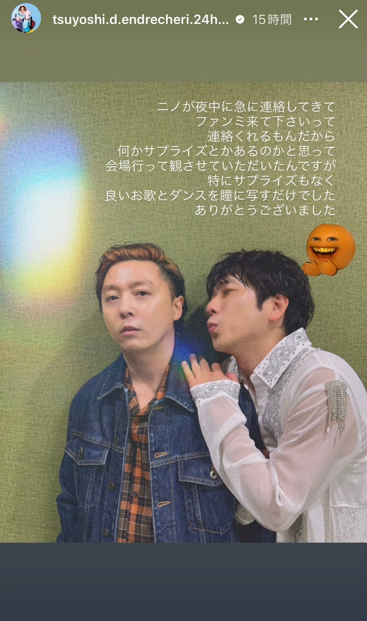 二宮和也、堂本剛との“キス寸前”密着ショット公開「べったりで可愛い」「公開プロポーズかと思った」の声