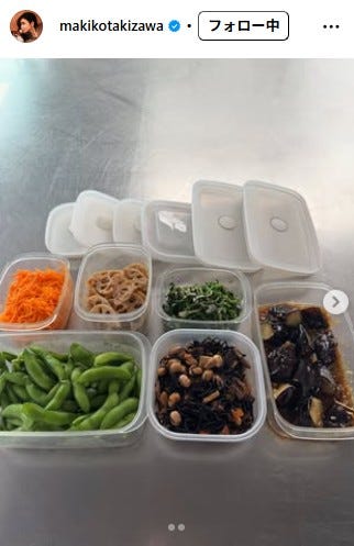 モデルの滝沢眞規子が5日、自身のInstagramを更新。作り置き料理を公開し、反響が寄せられている...
