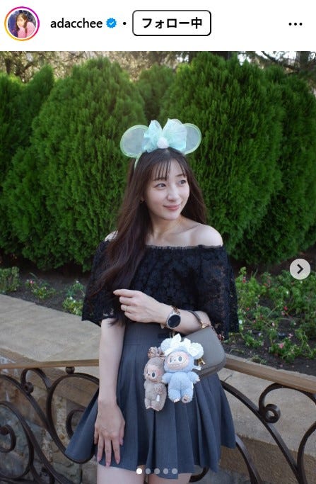 足立梨花、肩出しトップス&ミニスカ姿でディズニー満喫「可愛いと美しいが同居」と反響