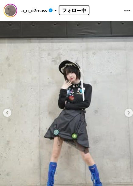 あの、ミニスカ衣装で美脚スラリ サンリオバッジでデコレーションも「流石の着こなし」「スタイル抜群」と反響