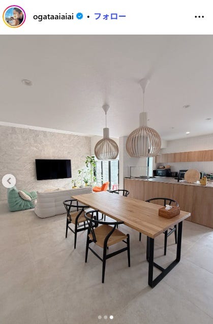 お笑いトリオ・パンサーの尾形貴弘の妻・あいさんが10月6日、自身のInstagramを更新。自宅を公...