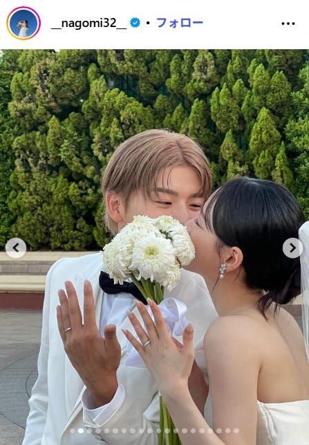 なごみ、夫・こーくんとのキスショットで結婚1周年を報告「泣けてきた」「幸せいっぱい」と反響