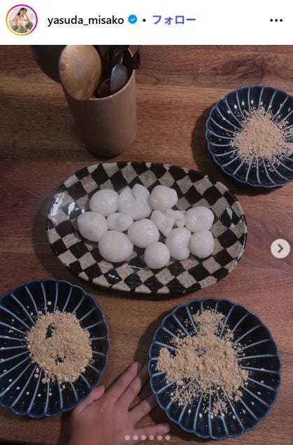 タレントの安田美沙子が10月7日、自身のInstagramを更新。息子2人と白玉団子を作る様子を公開...