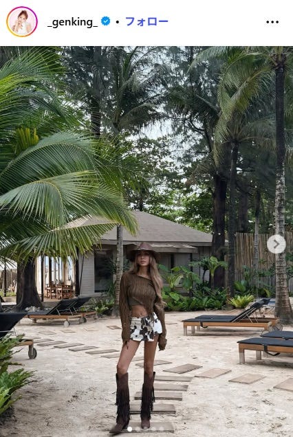 GENKING.、美脚際立つリゾートコーデを披露「スタイル完璧」「最高にかっこいい」と反響