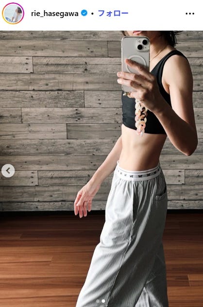 モデルの長谷川理恵が、10月7日に自身のInstagramを更新。美しいウエストを披露し、話題を呼ん...