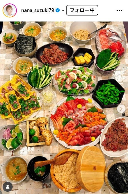 鈴木奈々&益若つばさ、豪華手巻きパーティーが話題「お店の料理かと」「クオリティ高い」
