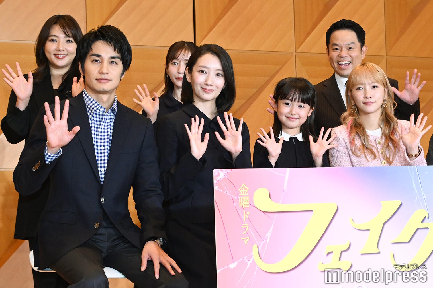 波瑠&川栄李奈主演「フェイクマミー」会見に人気芸人サプライズ登場 “記者なりすまし”でのステージ乱入にSnow Man向井康二が制止