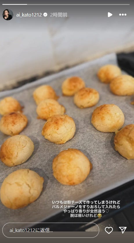 女優の加藤あいが10月10日、自身のInstagramストーリーズを更新。手作りの焼き菓子を公開した...