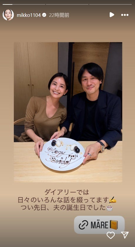 モデルの矢野未希子が10月10日、自身のInstagramのストーリーズを更新。夫との2ショットを公...