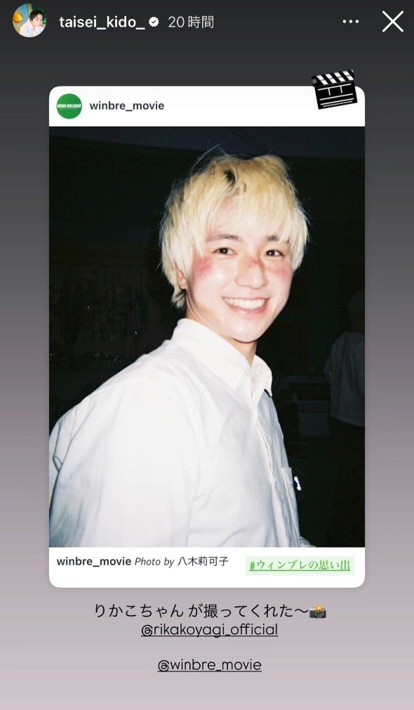 俳優の木戸大聖が10月11日、自身のInstagramストーリーズを更新。女優の八木莉可子撮影のオフ...