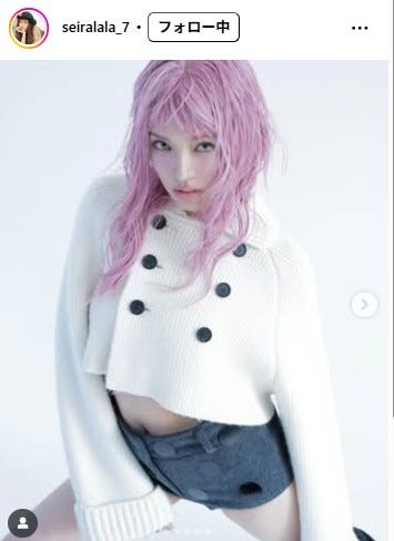 モデルのせいらが12日、自身のInstagramを更新。ピンク髪姿を披露し、話題になっている。