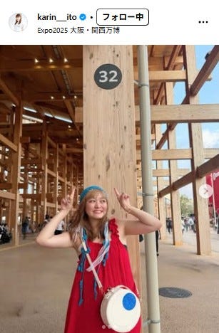 元乃木坂46の伊藤かりんが、10月12日に自身のInstagramを更新。大阪・関西万博のキャラクタ...