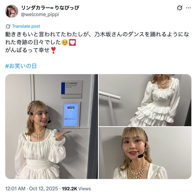 お笑いトリオ・リンダカラー∞のりなぴっぴが12日、自身のX(旧Twitter)を更新。乃木坂46とコ...