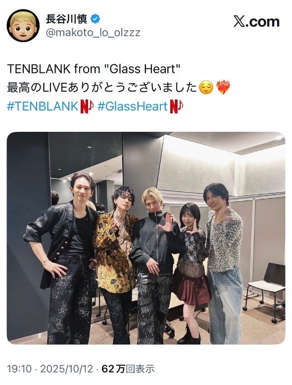 THE RAMPAGE長谷川慎、TENBLANKのファンミへ 佐藤健らとの記念ショットに「全員顔が強い」「並びがアツい」の声