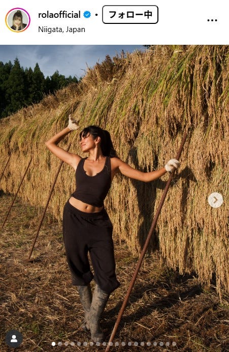 モデルのローラが10月12日、自身のInstagramを更新。タンクトップ姿の米収穫ショットを公開し...