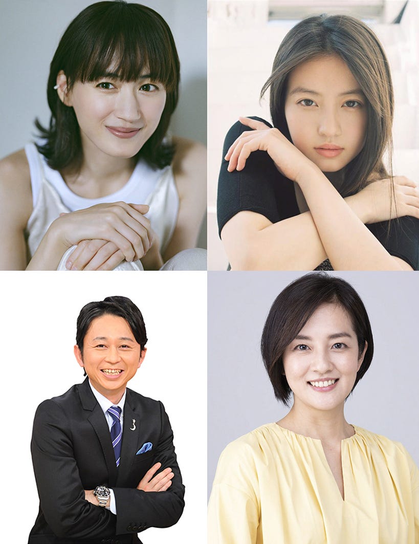 (左列上から)綾瀬はるか、有吉弘行(右列上から)今田美桜、鈴木奈穂子アナウンサー(※五十音順)(C)NHK